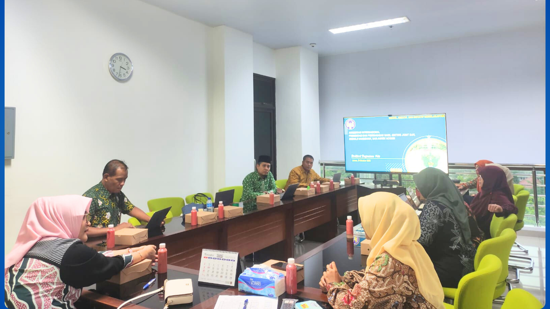 Pelaksanaan kegiatan ini merupakan tindak lanjut dari hasil review bersama Mr. Robert Raback, Project Manager ACQUIN, yang telah dilakukan pada 10 Oktober 2025. Hasil koordinasi tersebut menjadi dasar bagi tim untuk menyempurnakan substansi dokumen melalui proses penyelarasan, penerjemahan, serta finalisasi lampiran SAR. Dengan demikian, kegiatan presentasi dan pembahasan kali ini berfokus pada pemantapan hasil penyuntingan akhir serta verifikasi kesesuaian dokumen terhadap standar internasional yang berlaku.