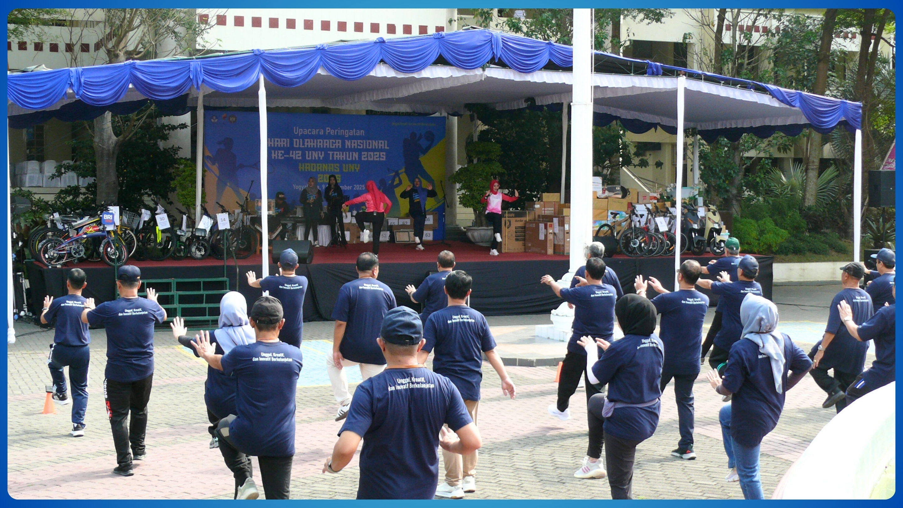Direktorat Penjaminan Mutu (DPM) Universitas Negeri Yogyakarta turut serta memeriahkan peringatan Hari Olahraga Nasional (Haornas) ke-42 yang diselenggarakan di halaman Rektorat UNY pada Selasa, 9 September 2025. Kegiatan ini diawali dengan senam bersama yang diikuti lebih dari 1500 peserta dari sivitas akademika UNY dan masyarakat sekitar.