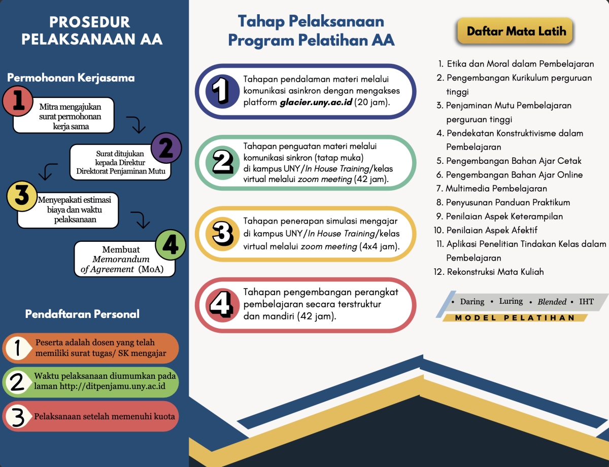 - Tahapan penguatan materi melalui komunikasi sinkron (tatap muka) di Kampus UNY/ In House Training (42 jam)